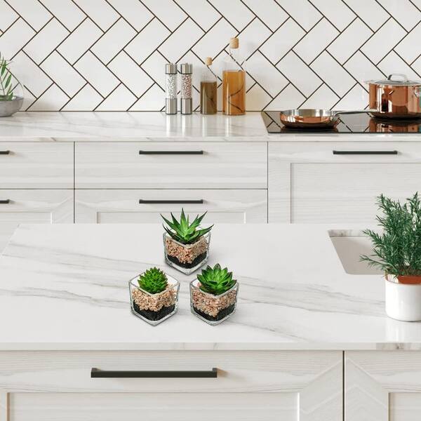 3.5 in. H Green Indoor Succulent Artificial Plant in Glass Pots for Home Office Table Desk Shelf Room Decor (Set of 3)