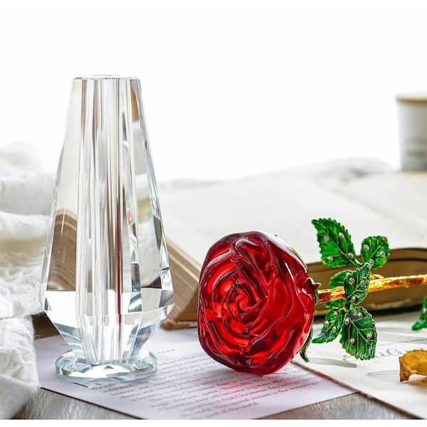 3.9"L x 3.9"W x 10.4"H Red Crystal Rose Figurine Collectible Glass Flower Gift