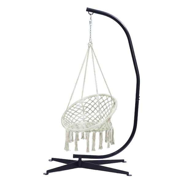 3.9 ft. Free Standing Hammock Chair with Stand Durable 300 Pound Capacity, Beige and Black