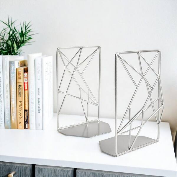3"D x 4.5"W x 7"H Heavy Duty Silver Geometric Metal Bookends,Rustic Retro Shelf Decor - High End Designer Unique Piece