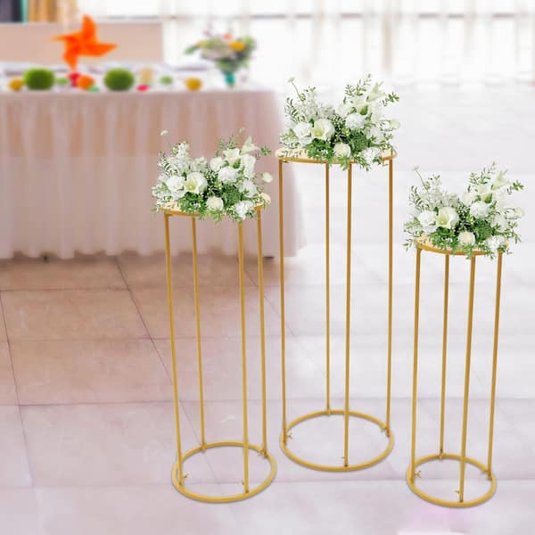 3 Different Size Wedding Flower Stands Gold Metal Column Stand Round Flower Display Stand