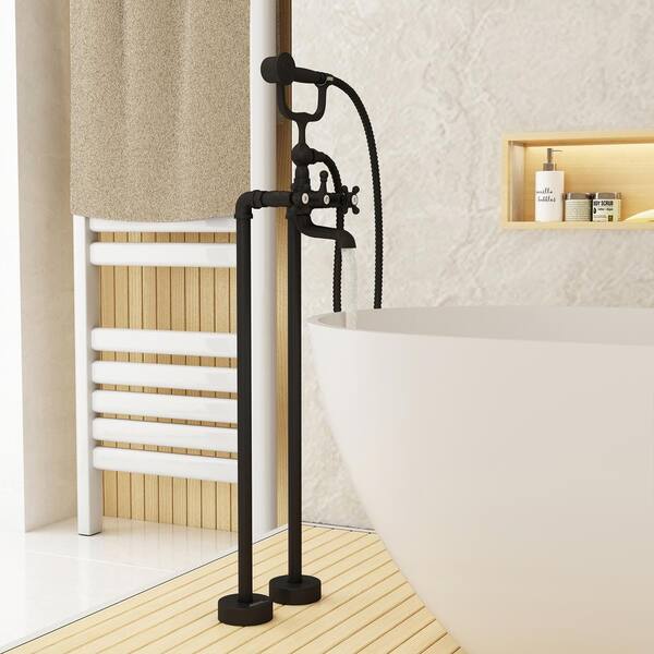 3-Handle Claw Foot Freestanding Tub Faucet with Handheld Shower in Matte Black