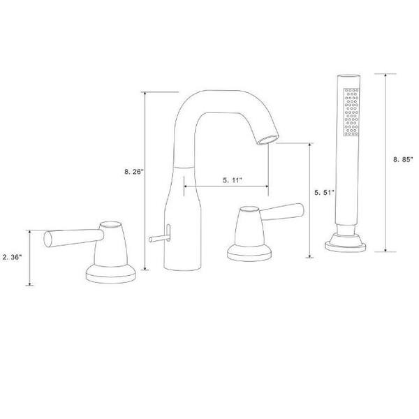 3-Handle Tub Deck Mount Roman Tub Faucet with Hand Shower in Golden Brushed