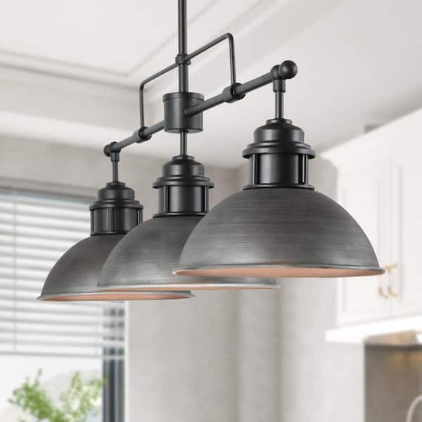 3-Light Antiqued Black Kitchen Island Linear Pot Lid Pendant Lighting