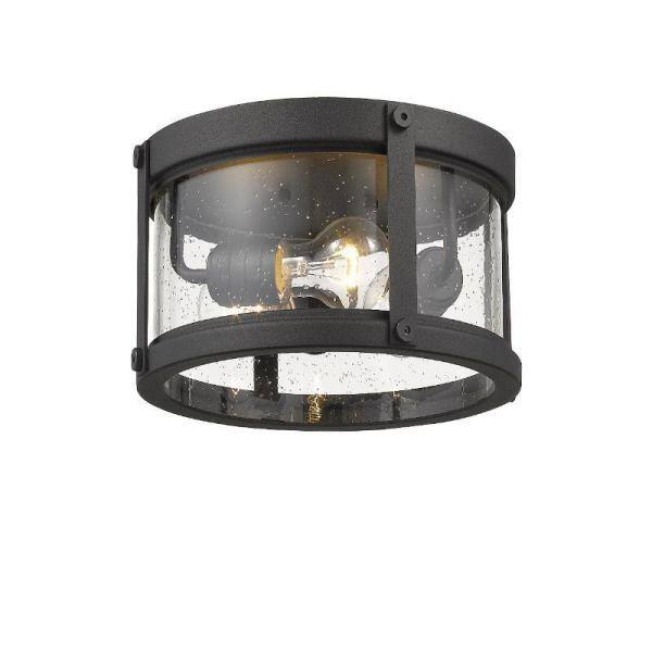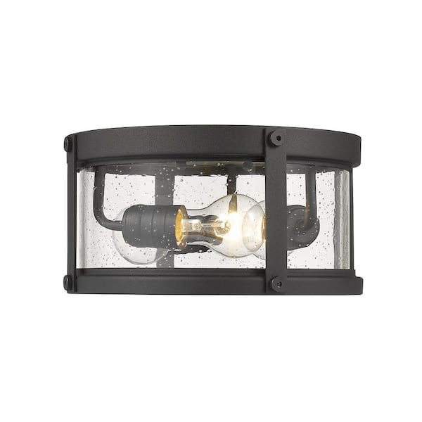 3-Light Black Outdoor Flush Mount with Clear Seedy Glass Shade