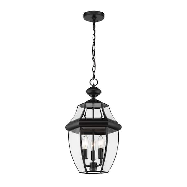 3-Light Black Outdoor Pendant Light with Clear Beveled Glass Shade