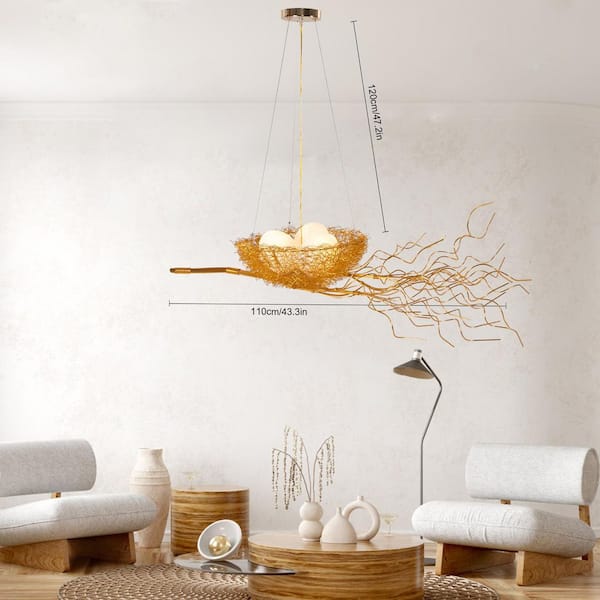 3-Light Gold Creative Bird Nest Chandelier with Adjustable Height for Living Room Dining Room Bedroom, No Bulbs Included