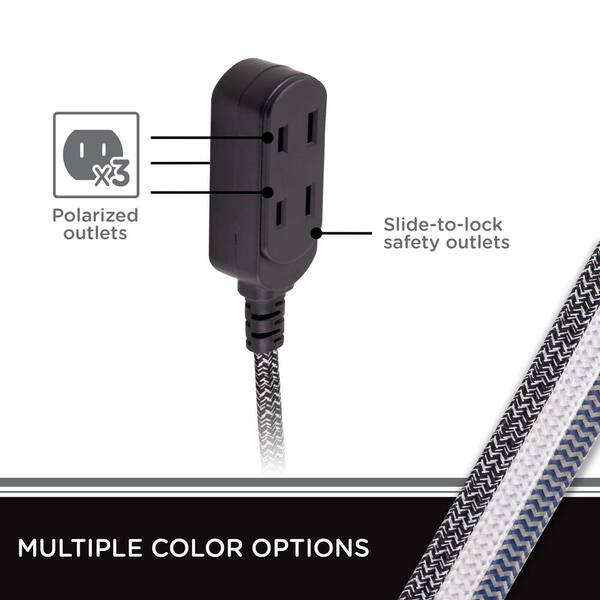3-Outlet Polarized Power Strip with 15 ft. Braided Cord, Dark Heather