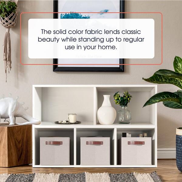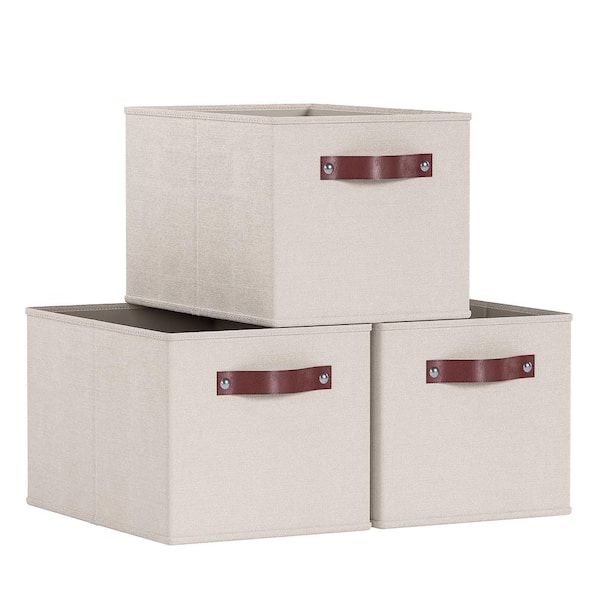 3-Pack Collapsible Storage Fabric Shelf Basket with Faux Leather Handles