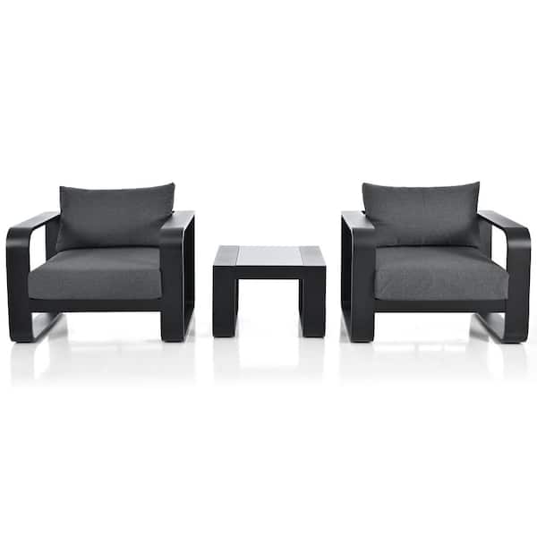 3-Piece Aluminum Frame Patio Furniture Set with 6.7 in. Thick Cushions in Gray and Black Olefin Fabric