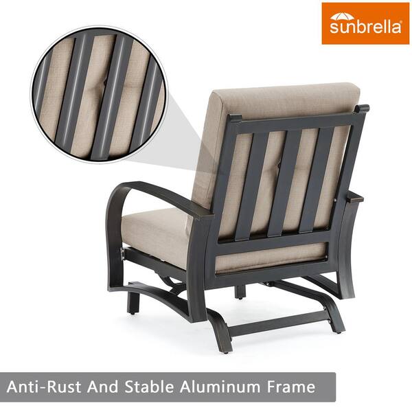 3-Piece Aluminum Patio Conversation Set with Beige Sunbrella Cushions, 2 Rocking Chairs, Side Table