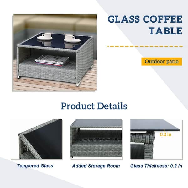 3-Piece Armless Wicker Outdoor Patio Conversation Seating Sofa Set with Coffee Table, Beige Cushions