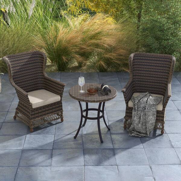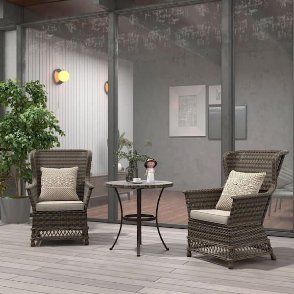 3-Piece Coffee PE Wicker Outdoor Patio Conversation Set with Beige Cushions and Round Coffee Table