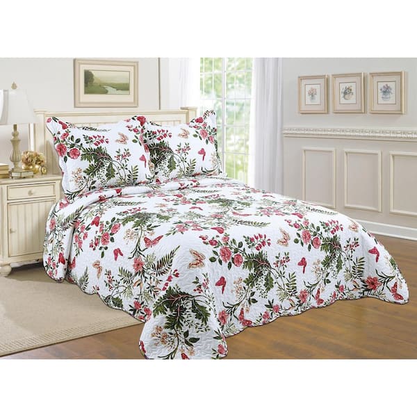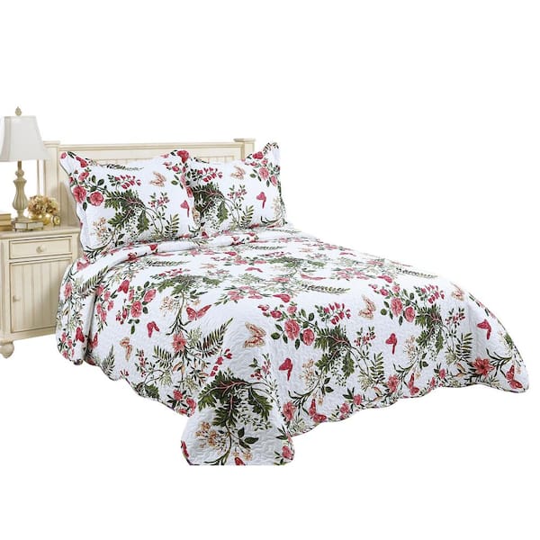 3-Piece Floral Cotton Blend Reversible King Quilt Set