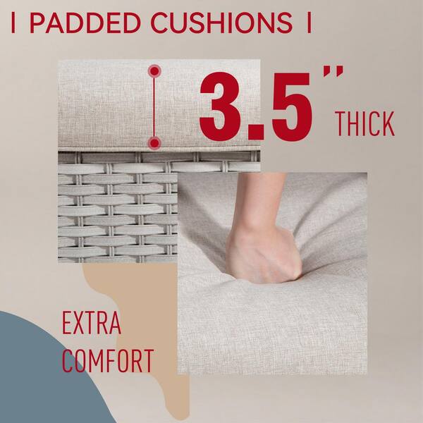 3-Piece Gray Wicker Patio Conversation Set Swivel Rocking Chair with Beige Cushions and Table