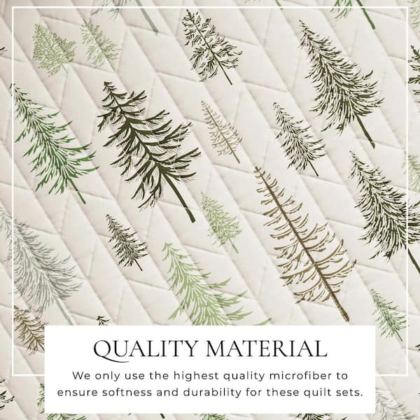 3-Piece Green Reversible Forest Themed Full/Queen Microfiber Quilt Set Bedspread