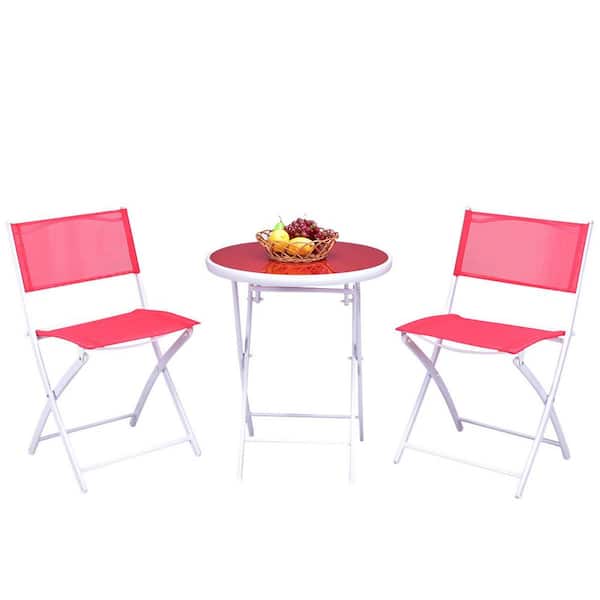 3-Piece Metal Folding Patio Conversation Set in Pink