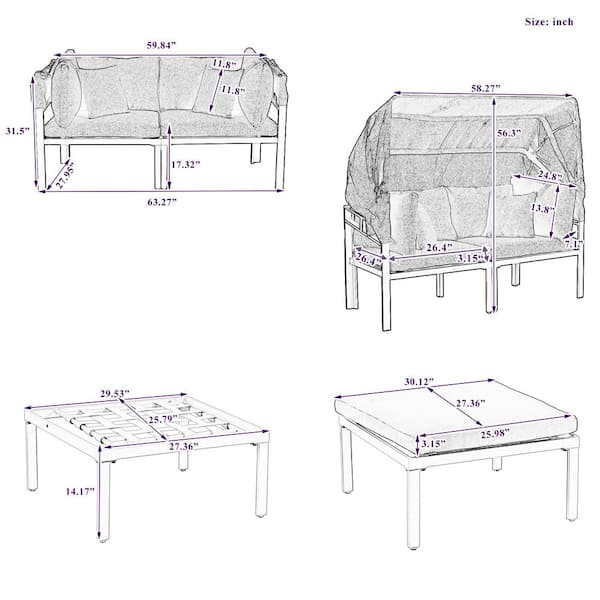 3-Piece Metal Outdoor Sectional Set with Beige Cushions for Backyard