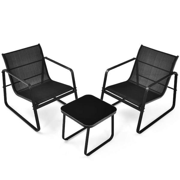 3-Piece Metal Patio Conversation Furniture Set with Glass Top Table