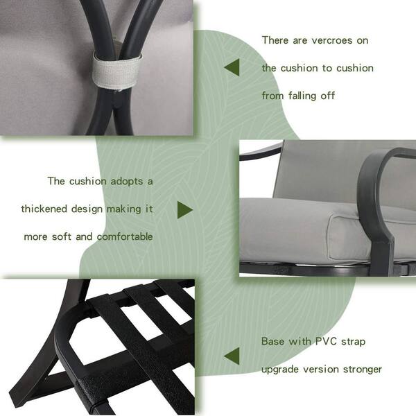 3-Piece Metal Patio Conversation Set 2 Rocking Chairs, Coffee Table with Gray Cushions