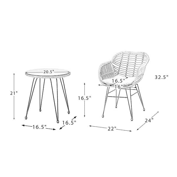 3 Piece Metal Rattan Patio Outdoor Bistro Set with Teal Cushion