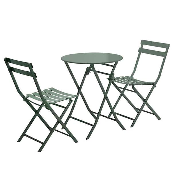 3-Piece Metal Round Patio Bistro Set Folding Table and Chairs Dark Green
