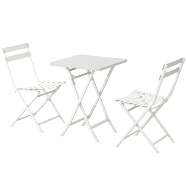 3-Piece Metal Square Patio Bistro Set Folding Table and Chairs White