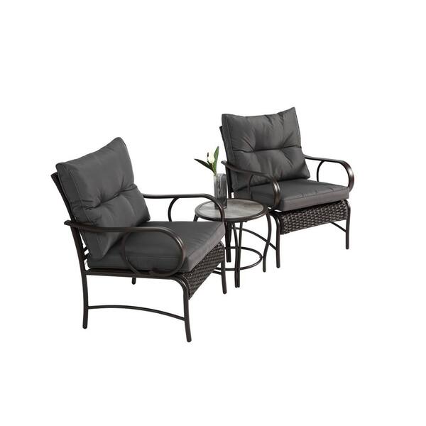 3 Piece Modern Wicker Outdoor Furniture Set Patio Parlor Set with Coffee Table Grey Cushions