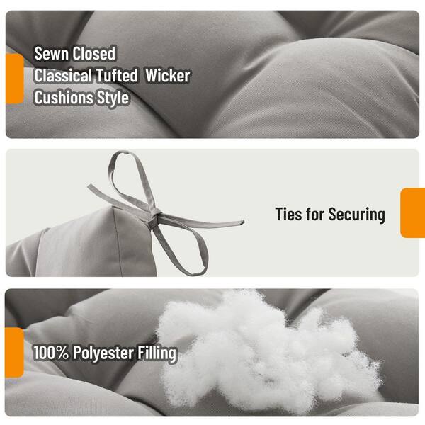 3-Piece Outdoor Chair Loveseat Outdoor Cushions Set 44 in.W x19 in.Wx5 in.H Patio Cushion for Patio Furniture/ Tie, Grey