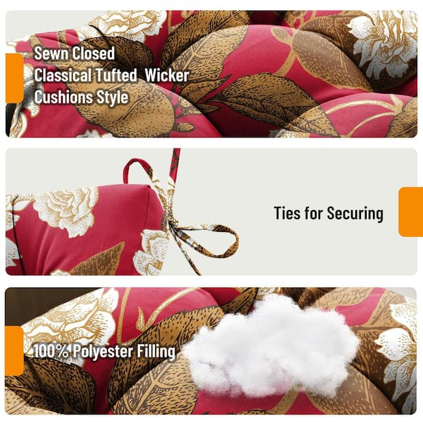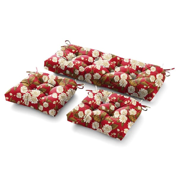 3 Piece Outdoor Loveseat Cushions Deep Seating 19"L x 44"W x 5"H For Patio Furniture Cushion With Tie, Red Floral