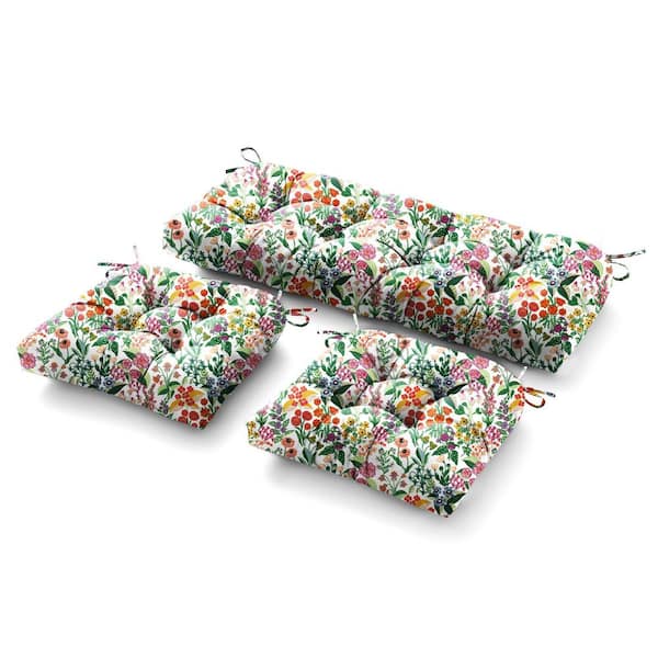 3 Piece Outdoor Loveseat Cushions Deep Seating 19"L x 44"W x 5 in. H For Patio Furniture Cushion With Tie, White Floral