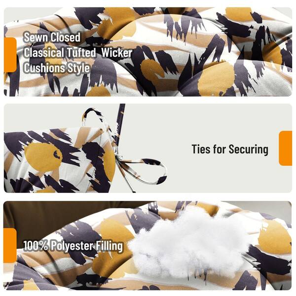 3-Piece Outdoor Loveseat Cushions Deep Seating 19 in. L x 44 in. W x 5 in. H, Patio Furniture Cushion w/Tie Brown Floral