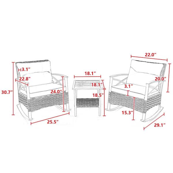 3-Piece Patio Conversation Rattan Rocking Chair Set with Blue Cushions for Garden, Backyard, Patio