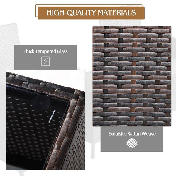 3-Piece Rattan Wicker Patio Converstaion Set With Glass Table Top and White Cushion