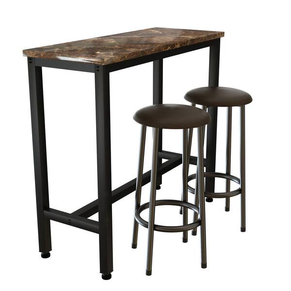 3-Piece Rectangle Brown MDF Wood Top Bar Table Set Seats 2