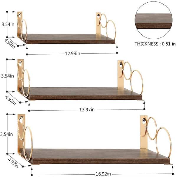 3-Piece Set Wall-Mounted Rack, Floating Shelf, Suitable For Living Room, Bedroom And Bathroom, Brown