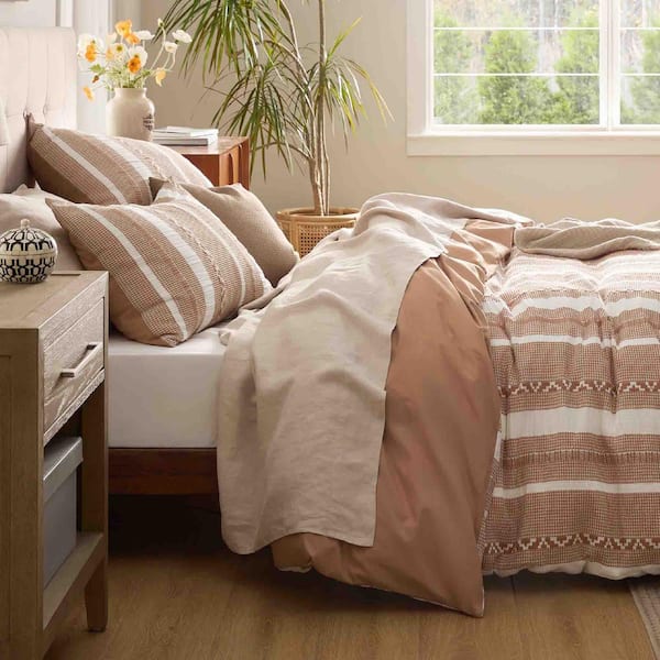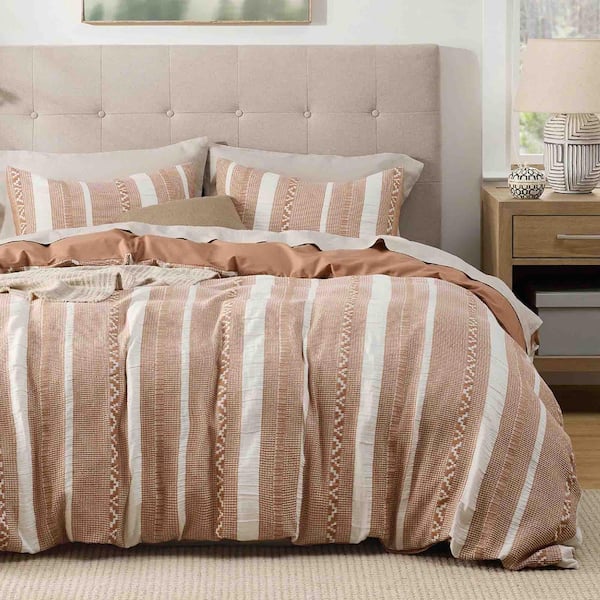 3-Piece Terracotta Textured Cotton King Duvet Cover Set