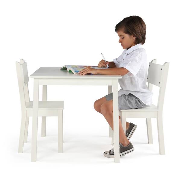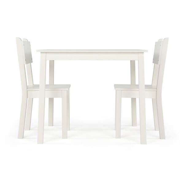 3-Piece White Large Rectangular Kids Wood Table and Chair Set