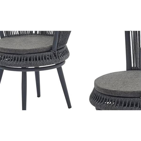 3-Piece Wicker Modern Rattan Patio Conversation Coffee Chair Table Set in Dark Gray