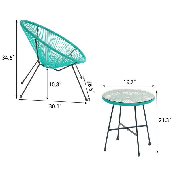 3-Piece Wicker Outdoor All Weather Weatherproof Outdoor Bistro Set in Lake Blue