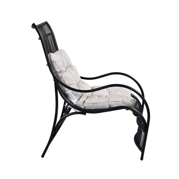 3-Piece Wicker Outdoor Lounge Chair, Patio Seating Set with Beige Cushion, Ottoman, Side Table for Garden Deck Backyard