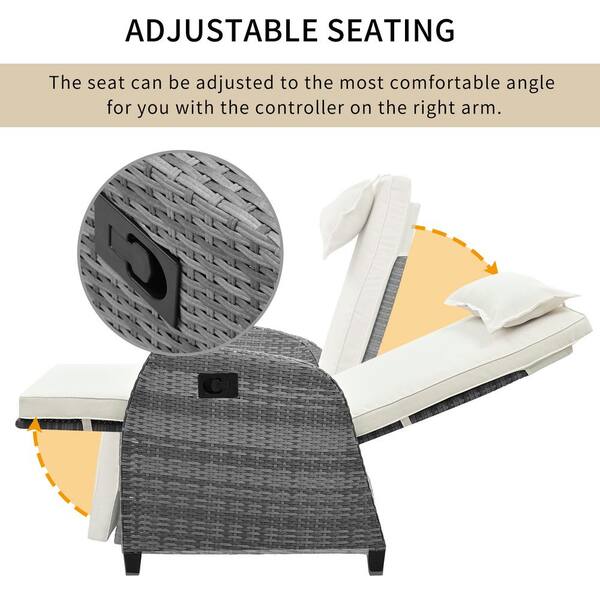3-Piece Wicker Outdoor Patio Conversation Set with Beige Cushions, Coffee Table and Adjustable Backrest