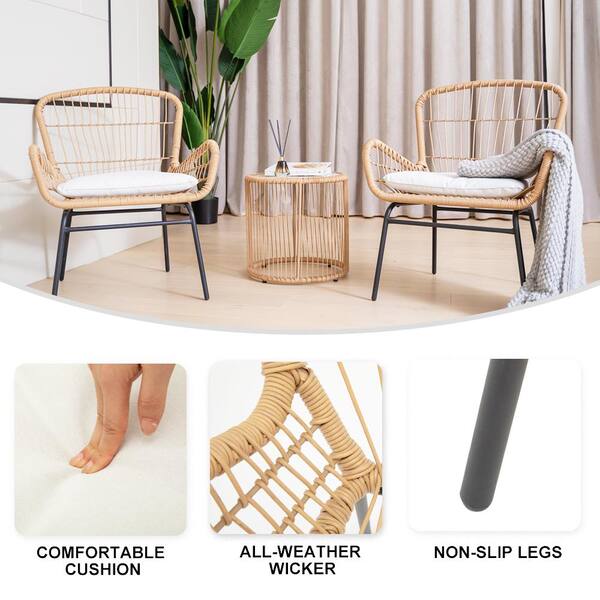 3-Piece Wicker Oversized Patio Outdoor Conversation Chair Set with Glass Top Table and Soft Cushion