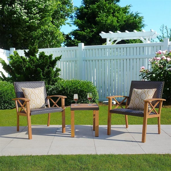 3-Piece Wicker Patio Conversation Seating Set with Beige Sunbrella Pillows