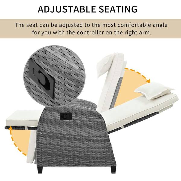 3-Piece Wicker Patio Conversation Set Adjustable Chair Combination with Coffee Table and Beige Cushions
