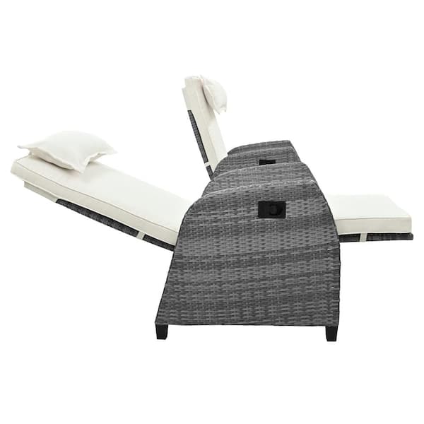 3-Piece Wicker Patio Conversation Set Adjustable Chair Combination with Coffee Table and Beige Cushions