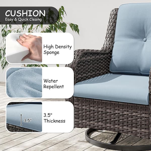 3-Piece Wicker Patio Conversation Set with Baby Blue Cushions All-Weather Swivel Rocking Chairs
