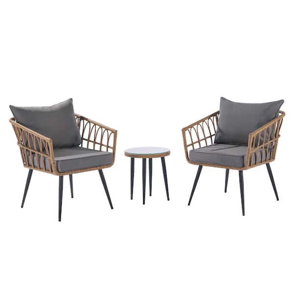 3-Piece Wicker Patio Conversation Set with Dawn Gray Cushions