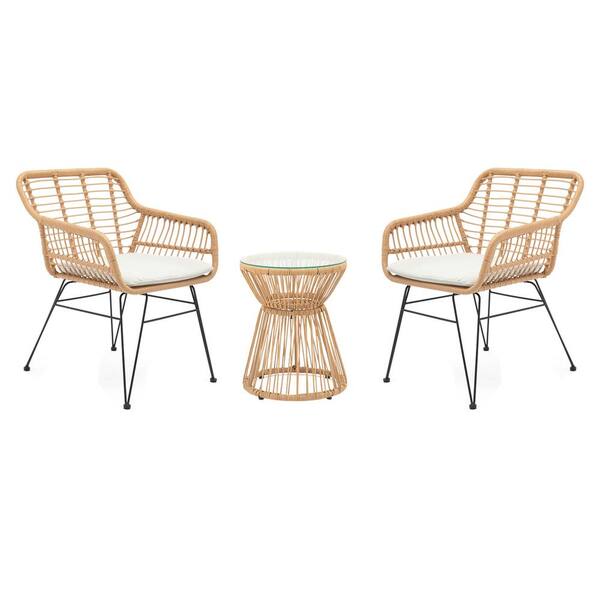 3-Piece Wicker Patio Conversation Set with Off-White Cushion