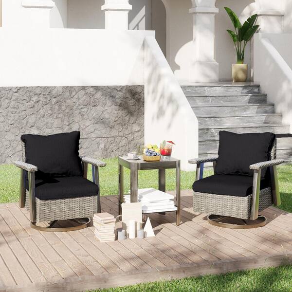 3-Piece Wicker Patio Swivel Rocking Chair Conversation Set with Black Cushions